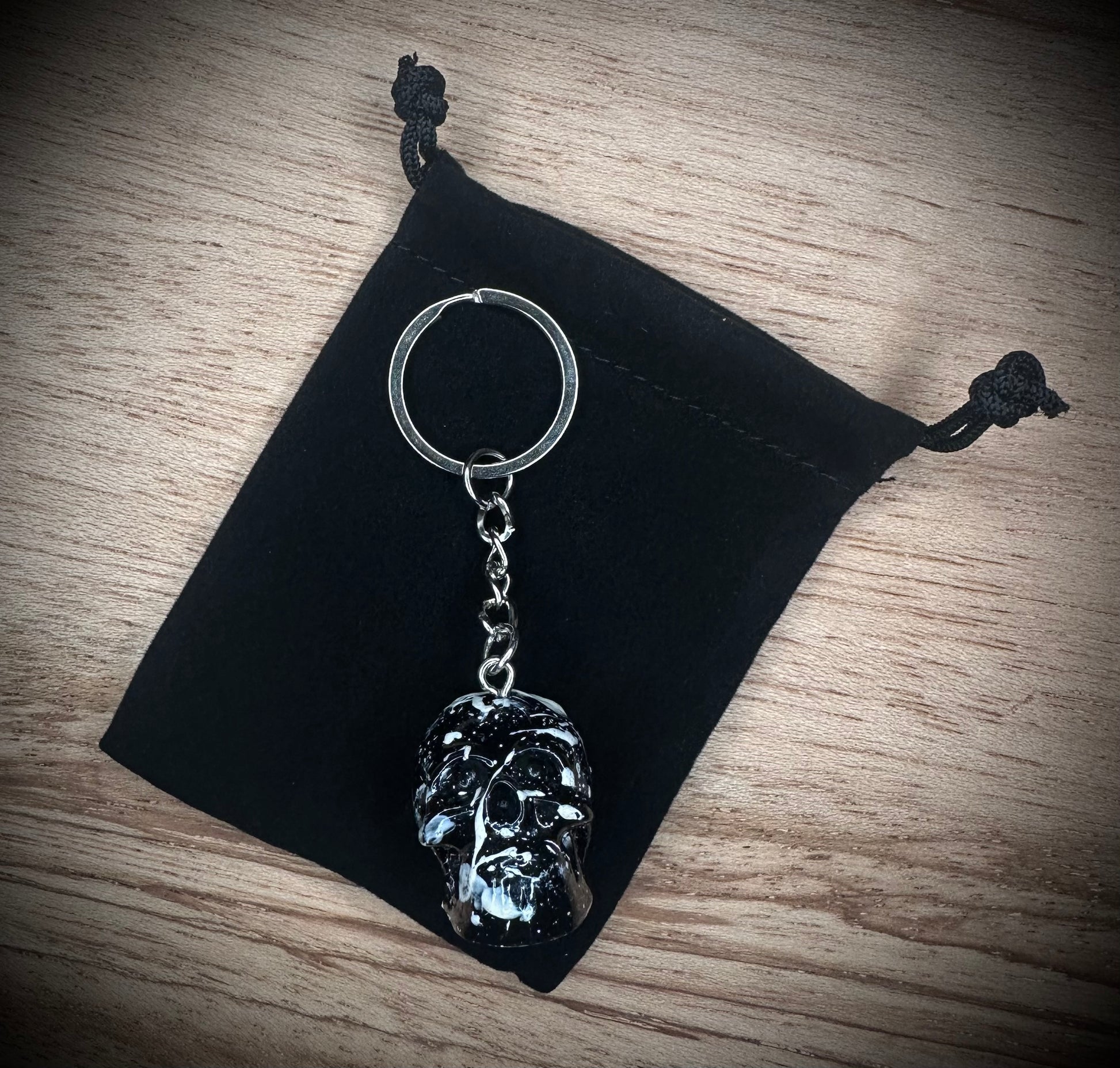 Expertly handcrafted with care, this Black and White Splash Skull Keyring features a unique resin Skull design in bold colours. Carry your keys in style with the included key ring and velvet black bag. Plus, the eco-friendly packaging makes for a great gift and reduces plastic waste.