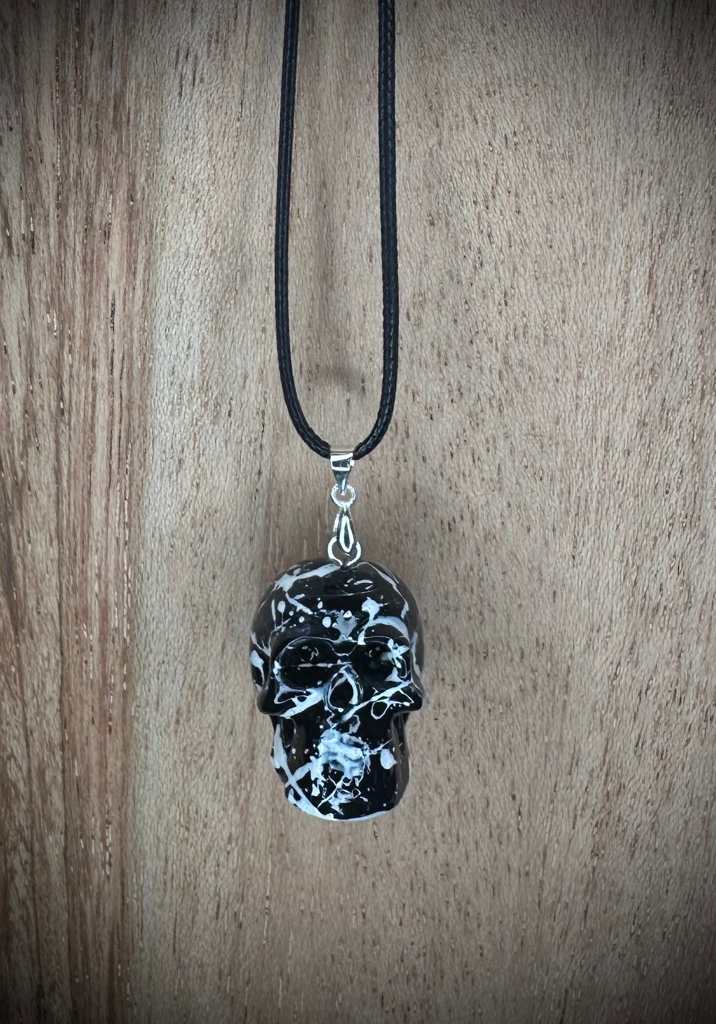 Black and White Splash Skull Necklace