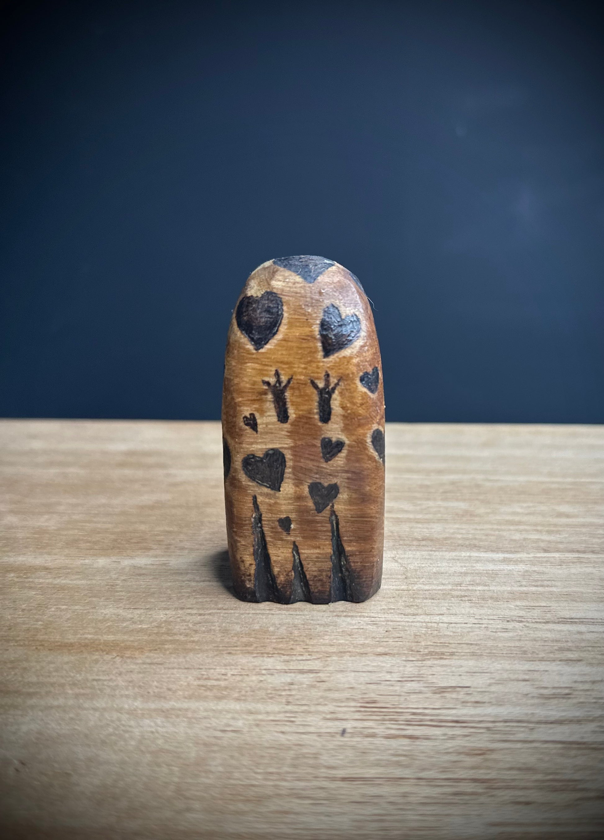 Hand burnt, sealed with osmo and then waxed to give it a lovely shine. All our sealants are environmentally friendly and all our wood is sustainably sourced.