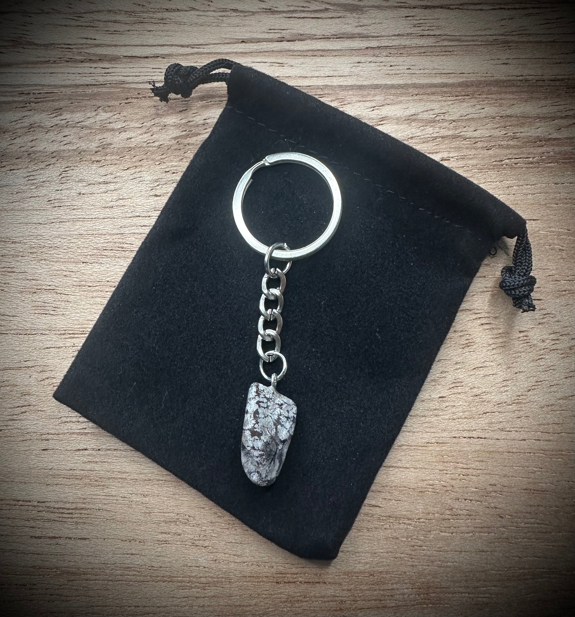 Snowflake Obsidian Stone Keyring