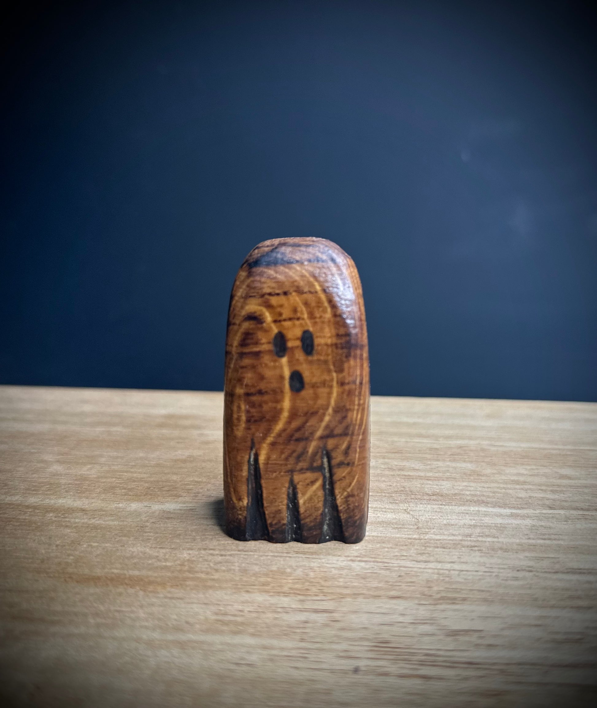 A hand carved wooden oak ghost.
