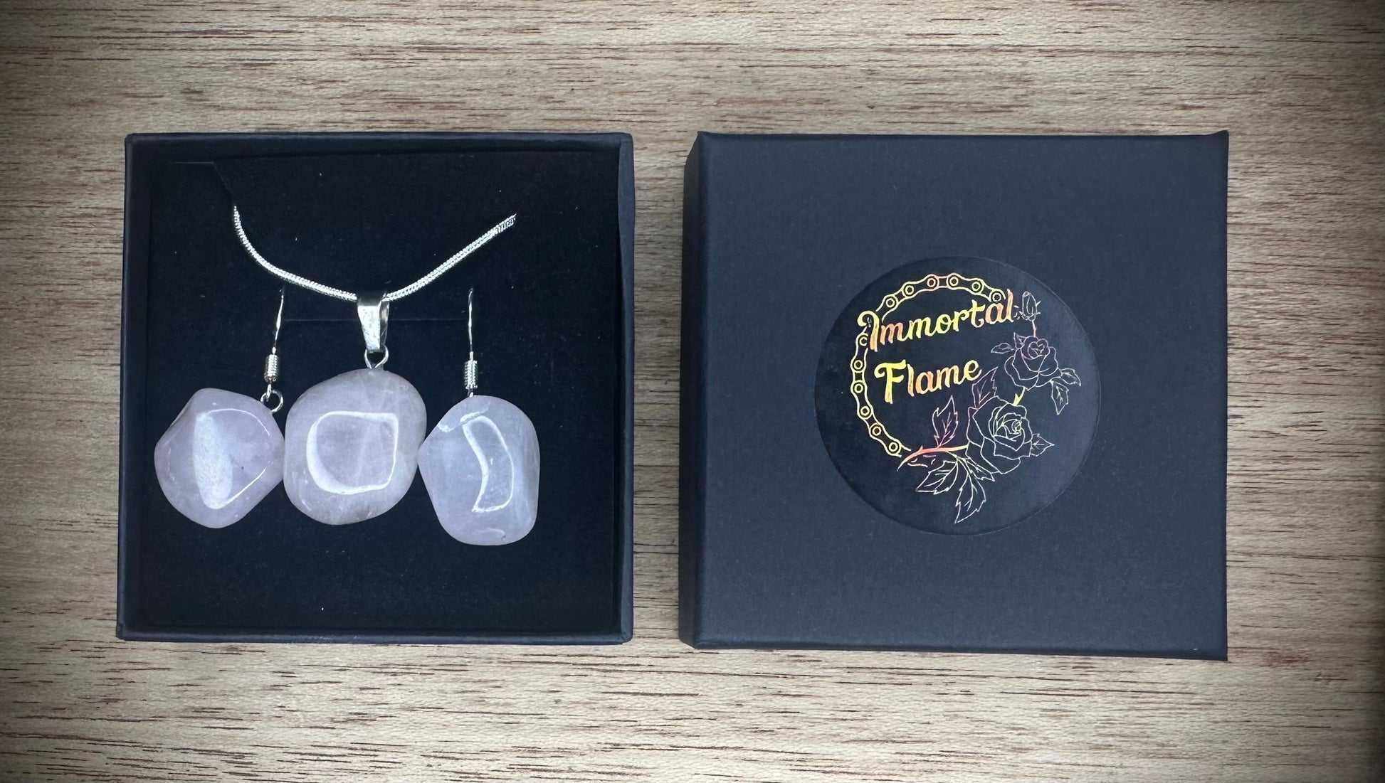 Rose Quartz Sterling Silver Necklace and Earing Set